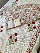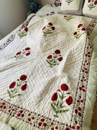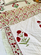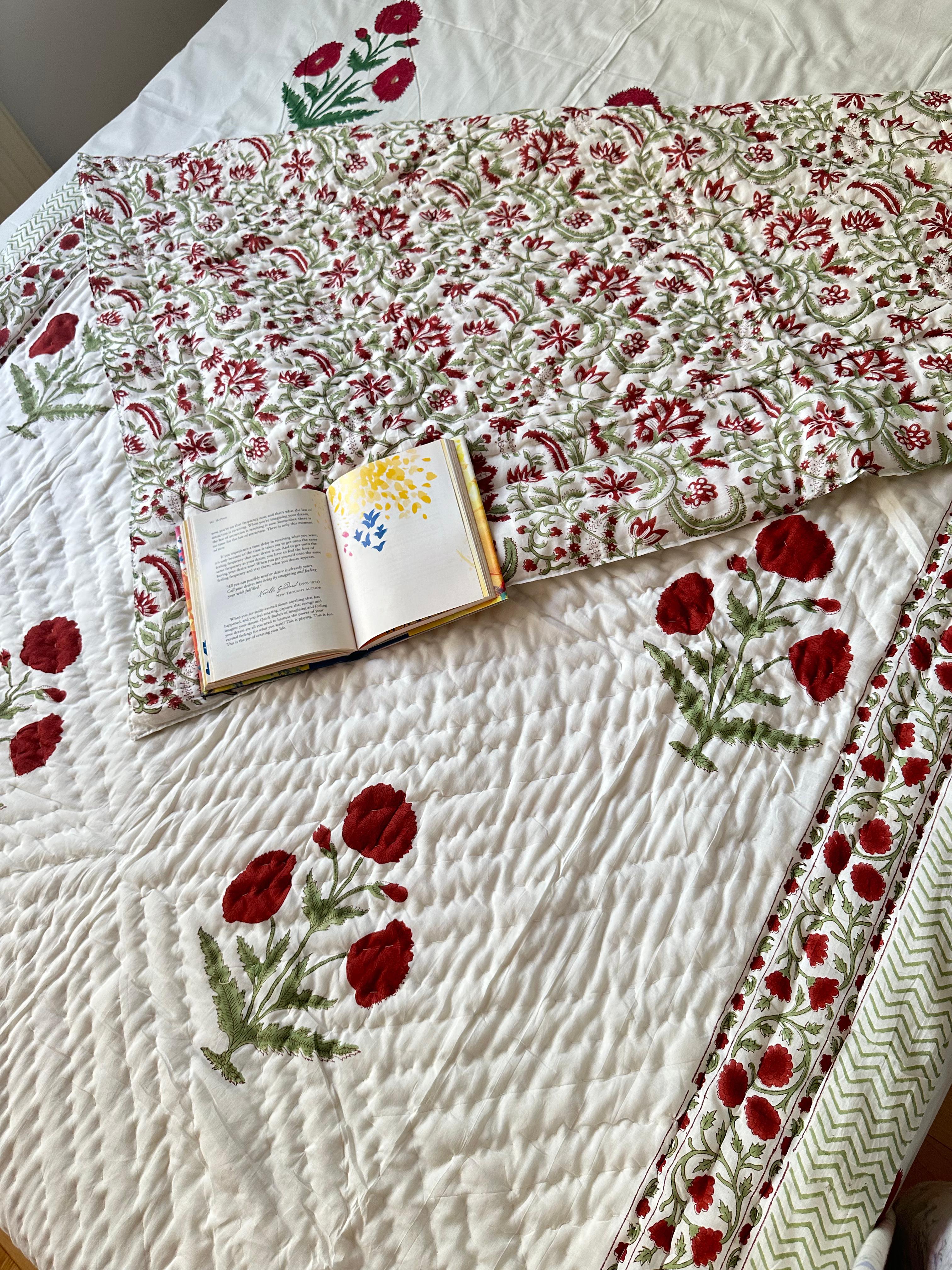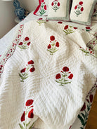 Experience the timeless elegance of our All Seasons Quilt, adorned with a stunning red poppy hand block print.