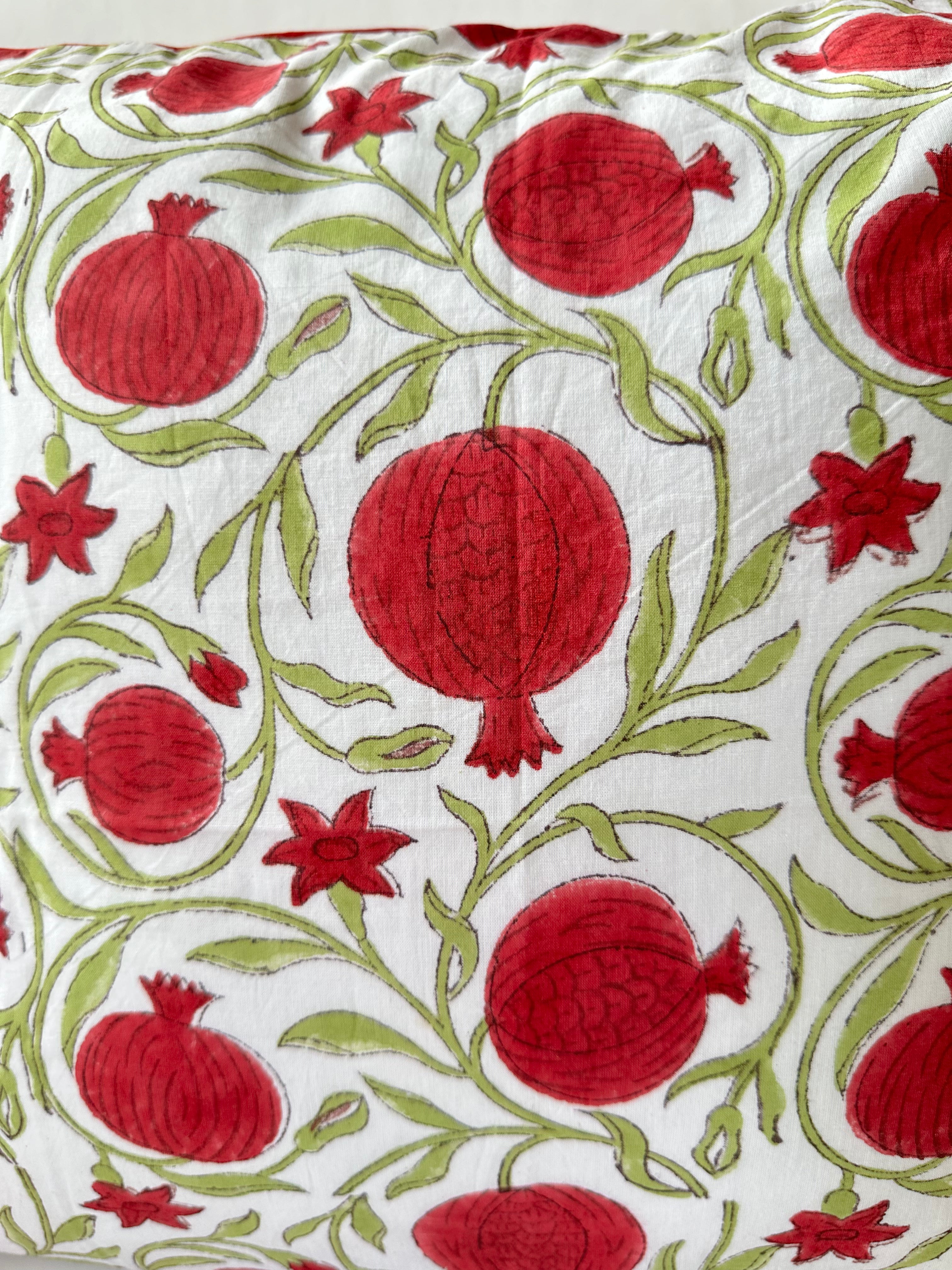 Bring in this summer, prosperity and abundance with our Pomegranate Paradise cushions, lovingly hand block printed by skilled artisans of India.