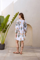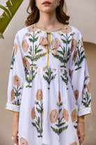 Introducing our stunning Indian Cotton Short Dress, adorned with a delicate Marigold hand block print. The intricate detailing captures the essence of these rare flowers, their petals unfurling in a dance of grace and beauty.