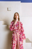Experience the timeless elegance of our ruby red floral cotton kimono, a true embodiment of style, comfort, and craftsmanship.