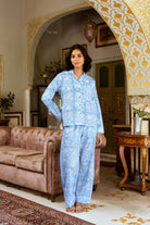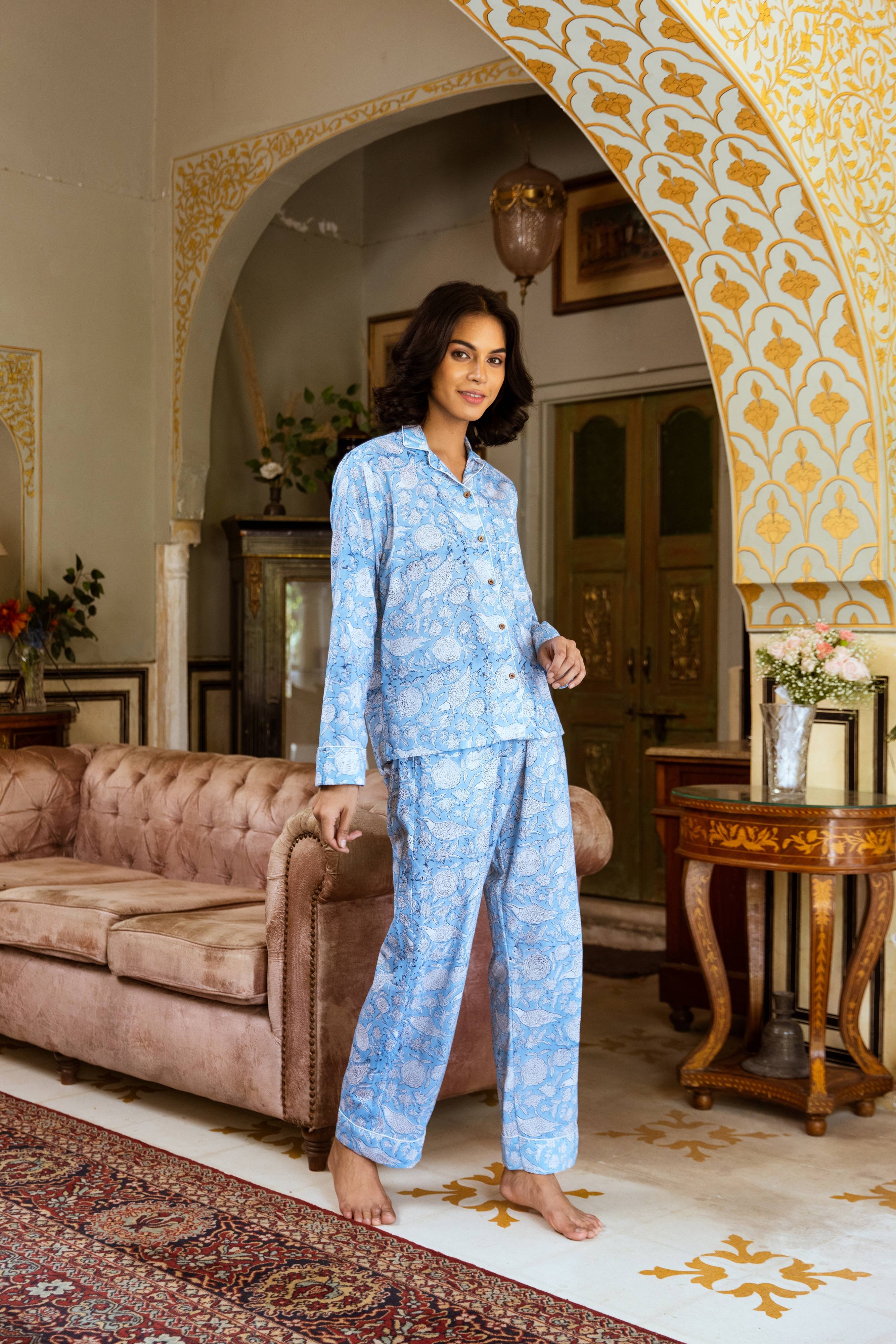 Hand block printed, our Blue Quail cotton night suit is inspired by the blue Quail bird. Native to India, Quails are known for their calm and peaceful demeanor.