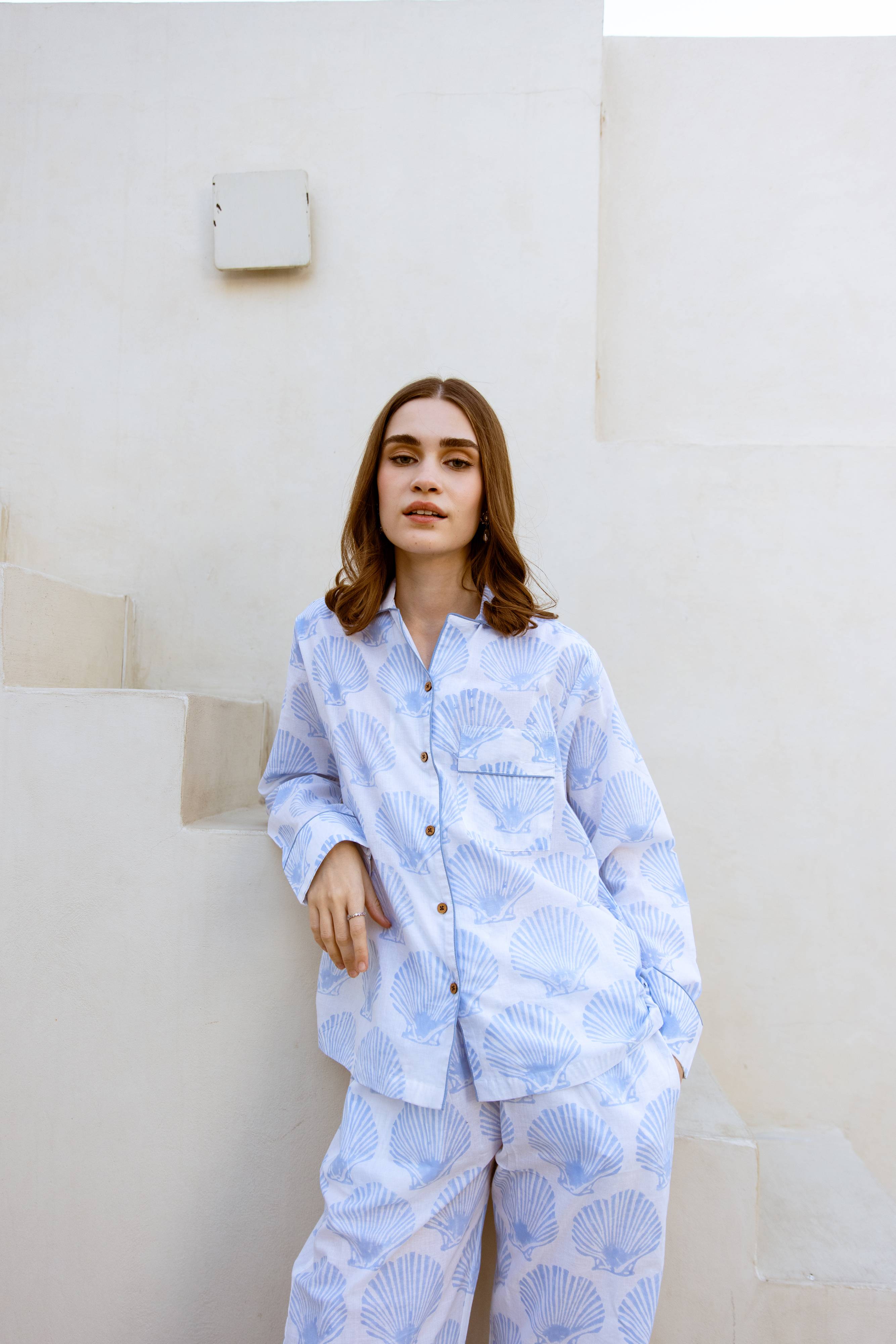Designed for both comfort and style, our seashell symphony 100% premium cotton night suit immerses you in the tranquil beauty of the seaside and lets you experience pure comfort and coastal elegance like never before.
