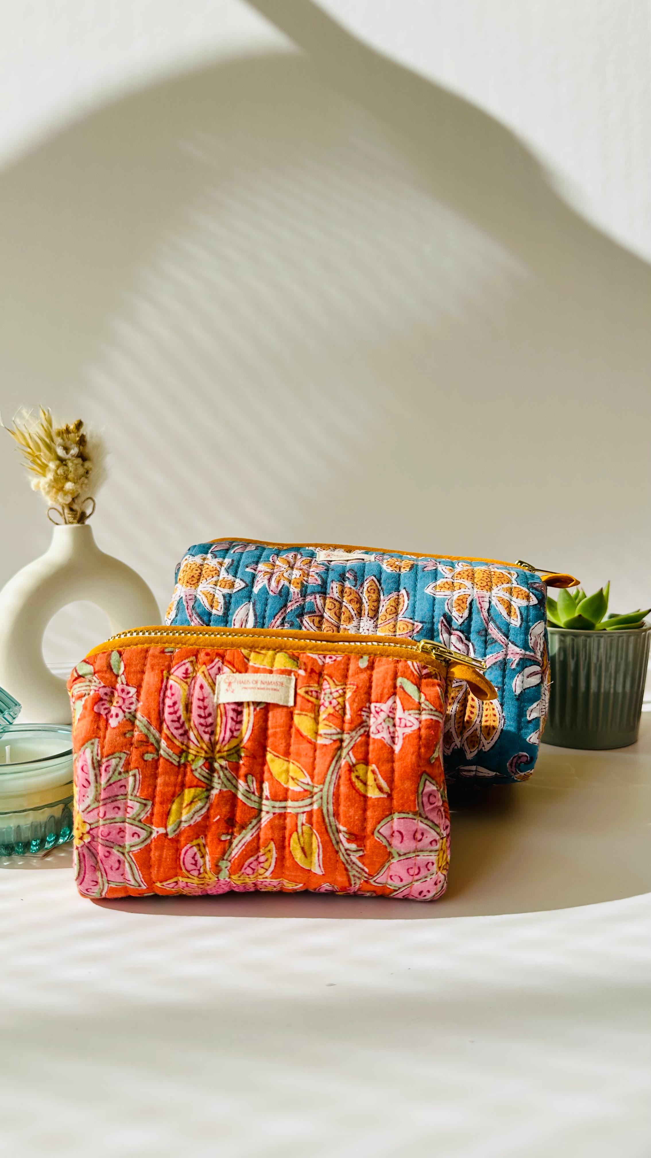 Each set comes with two pouches, meticulously handcrafted from 100% pure cotton and adorned with complementary hand block prints, lovingly created by artisans of India.