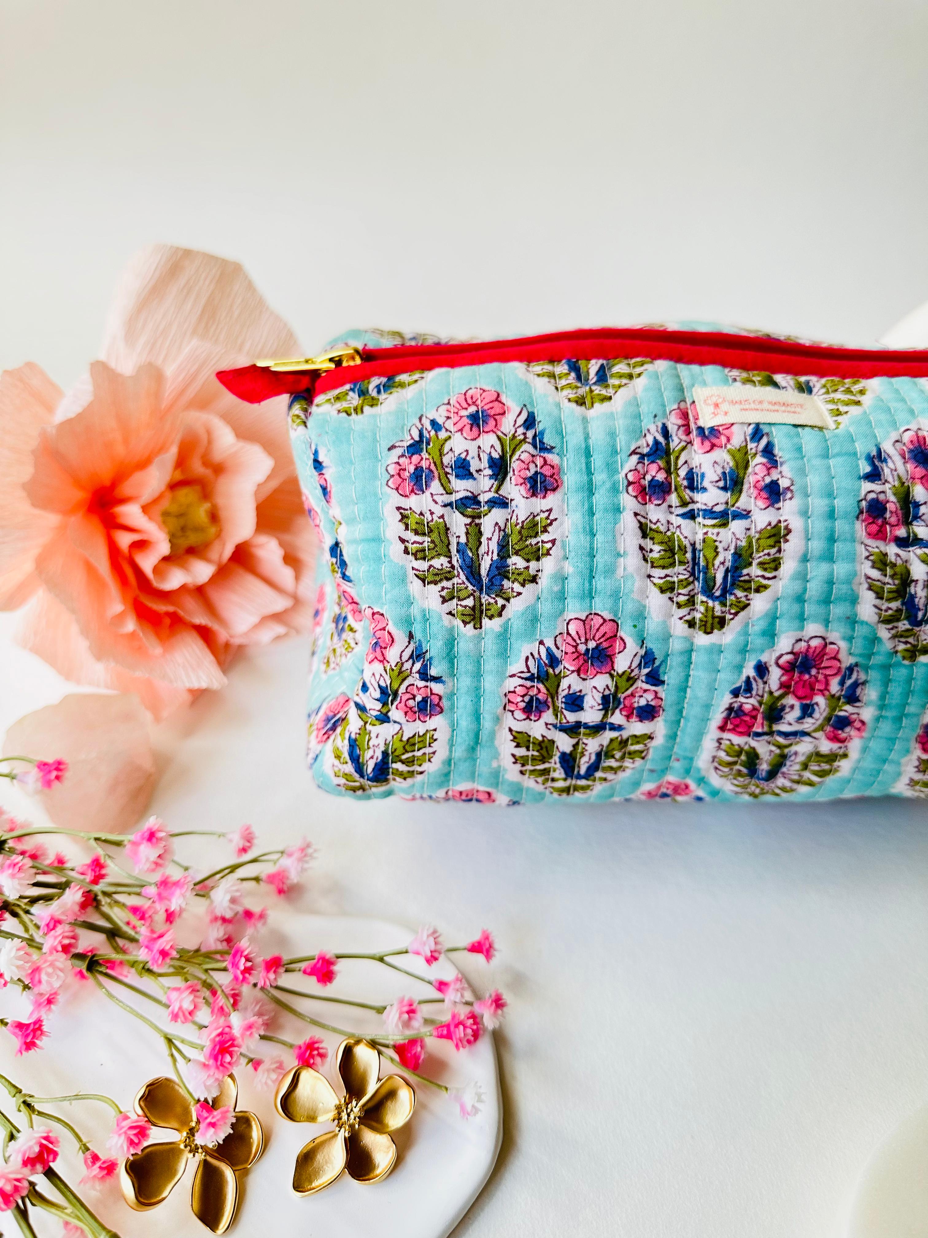 Each pouch is meticulously hand block printed by skilled artisans from India, infusing every piece with love, care, and traditional craftsmanship. Perfect for everyday use or travel, they effortlessly combine style and utility.