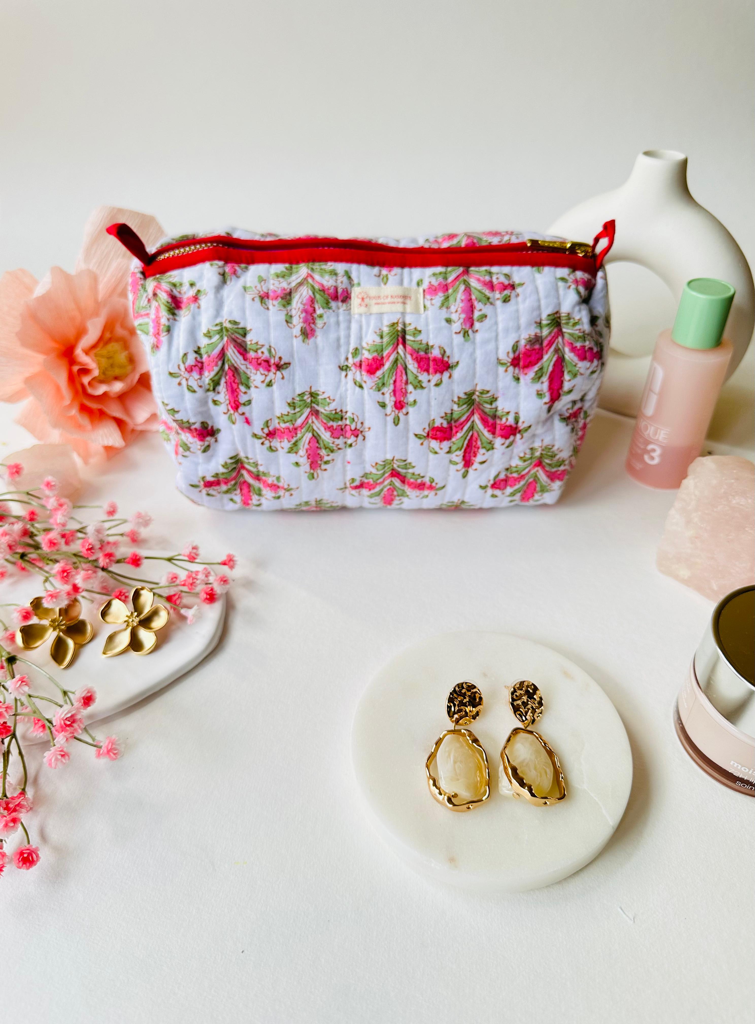 Each pouch is meticulously hand block printed by skilled artisans from India, infusing every piece with love, care, and traditional craftsmanship. Perfect for everyday use or travel, they effortlessly combine style and utility.