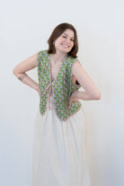 Embrace effortless charm with this reversible floral vest, delicately hand-printed in soft, earthy tones.