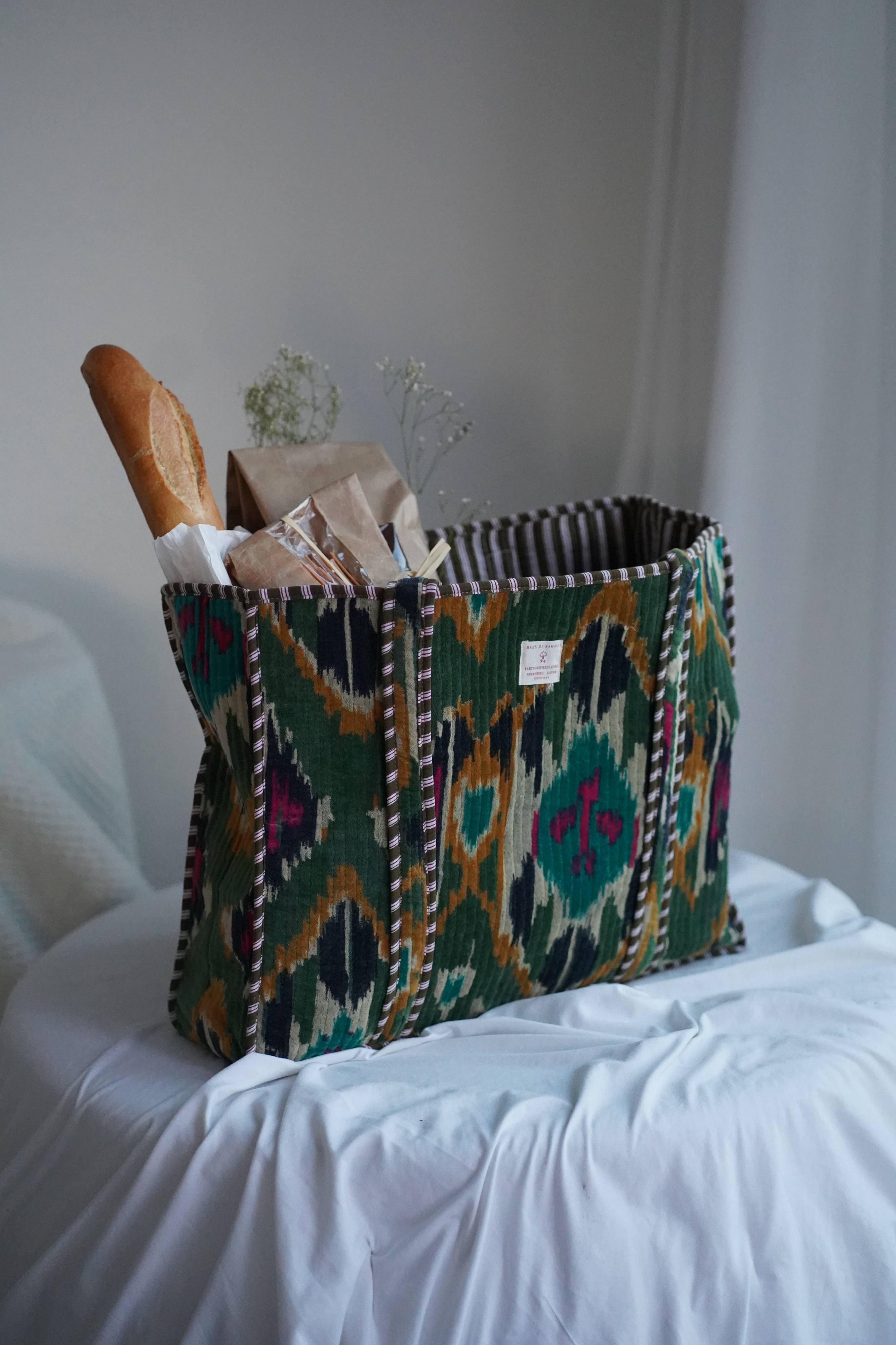 Turn heads with our Green Ikat Velvet Bag — where timeless tradition meets modern elegance. Hand-printed by artisans in India, this velvet beauty blends rich texture with the bold geometry of classic Ikat design. Whether you’re strolling through the city, heading to brunch, or off on a weekend getaway, this bag adds an effortless touch of sophistication to every look