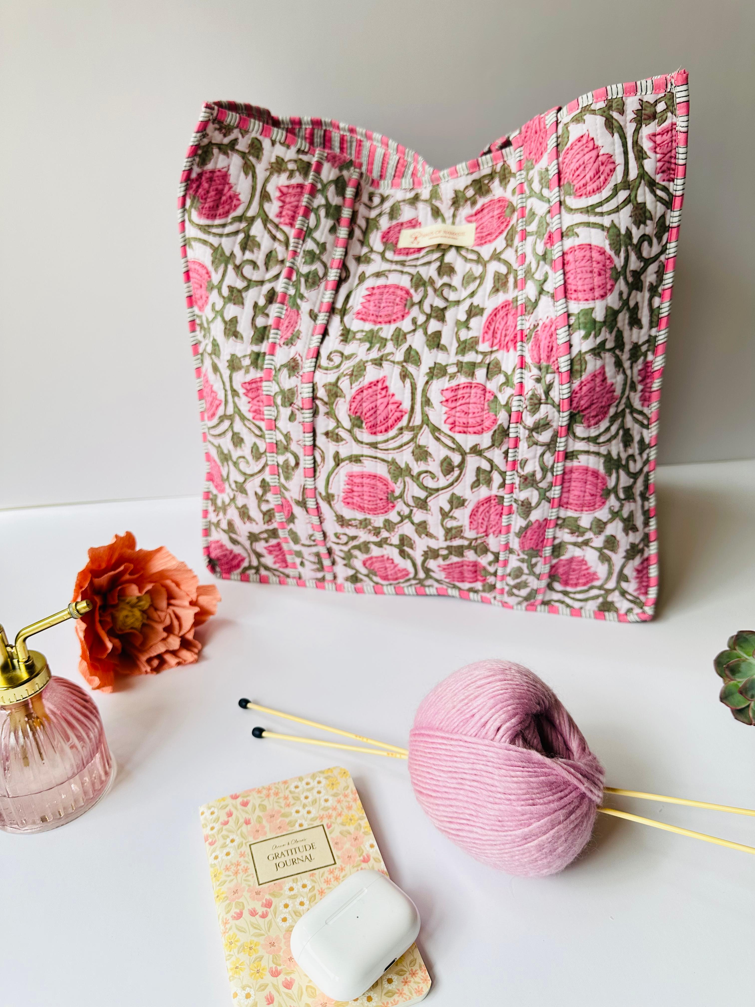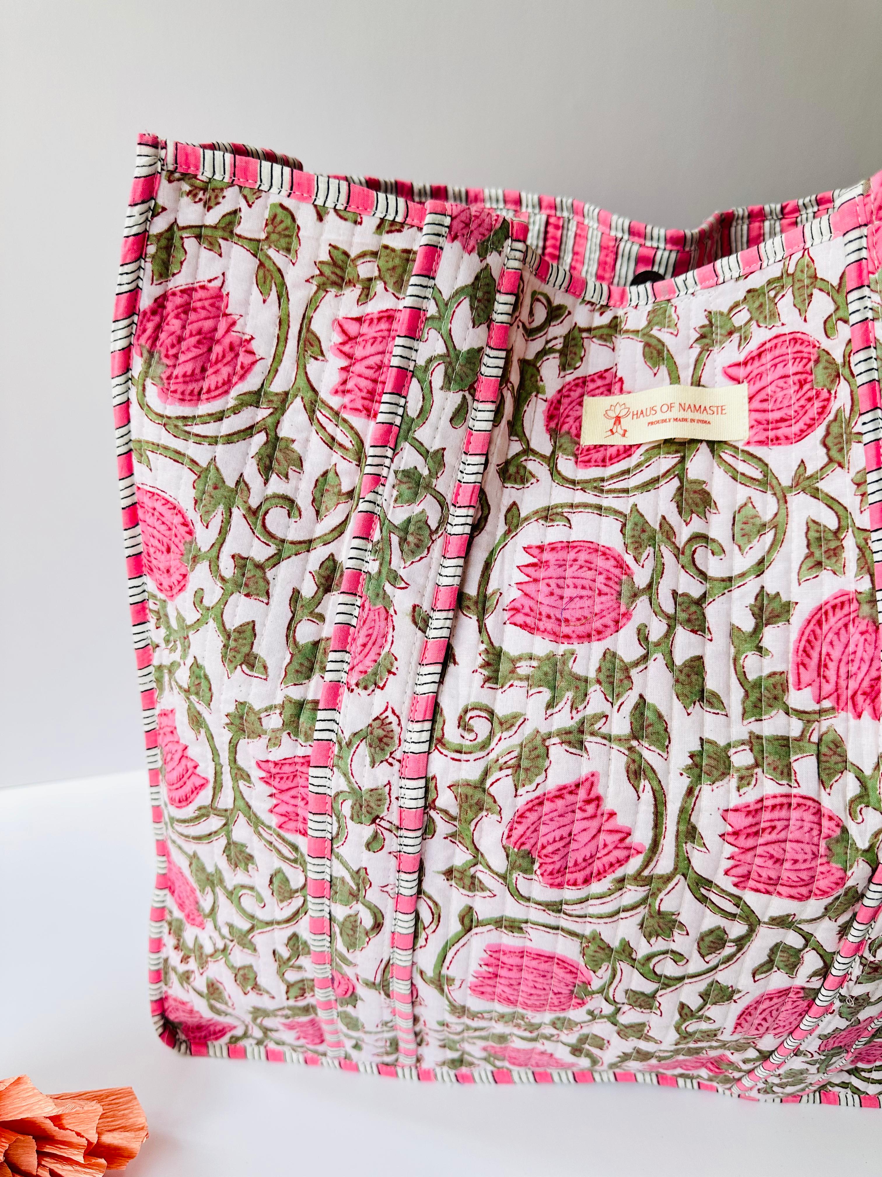 Handgefertigte Baumwolltragetasche mit Lotus-Print – Leicht & Vielseitig
