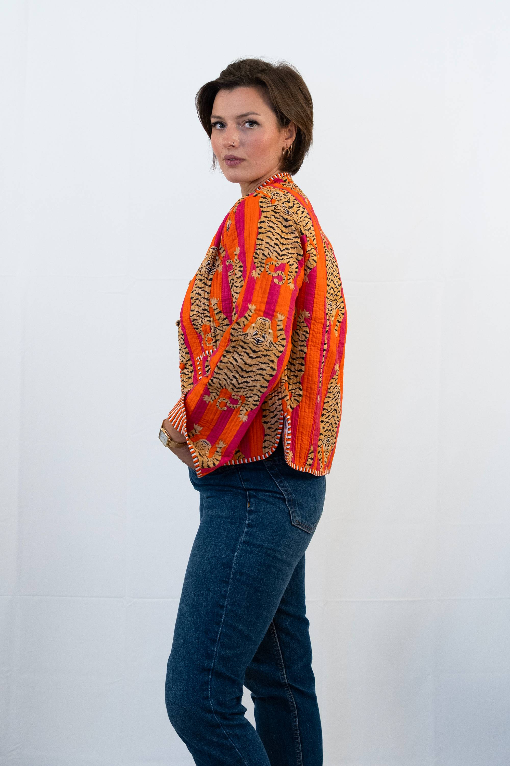 Rosa und grüne Tigerjacke