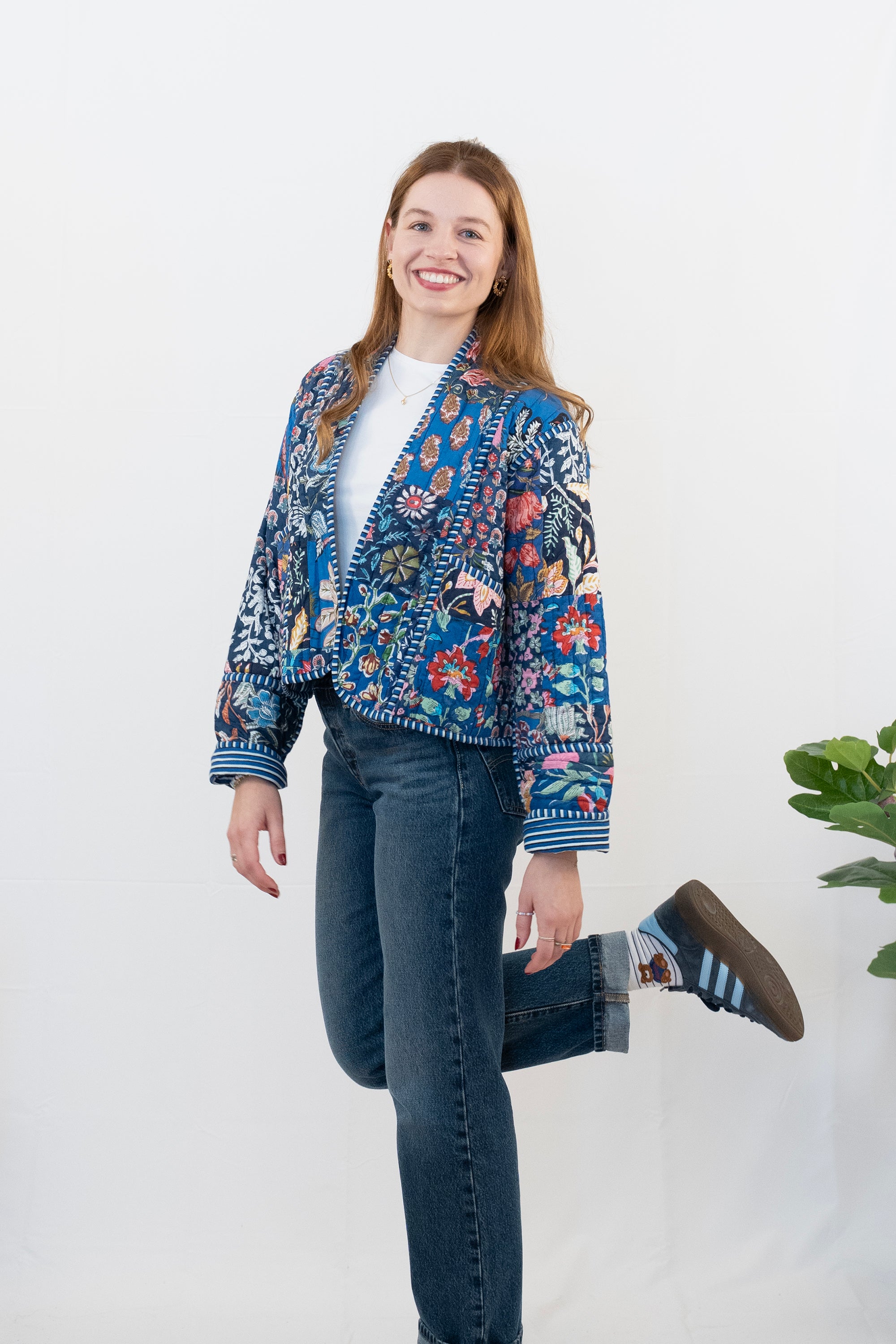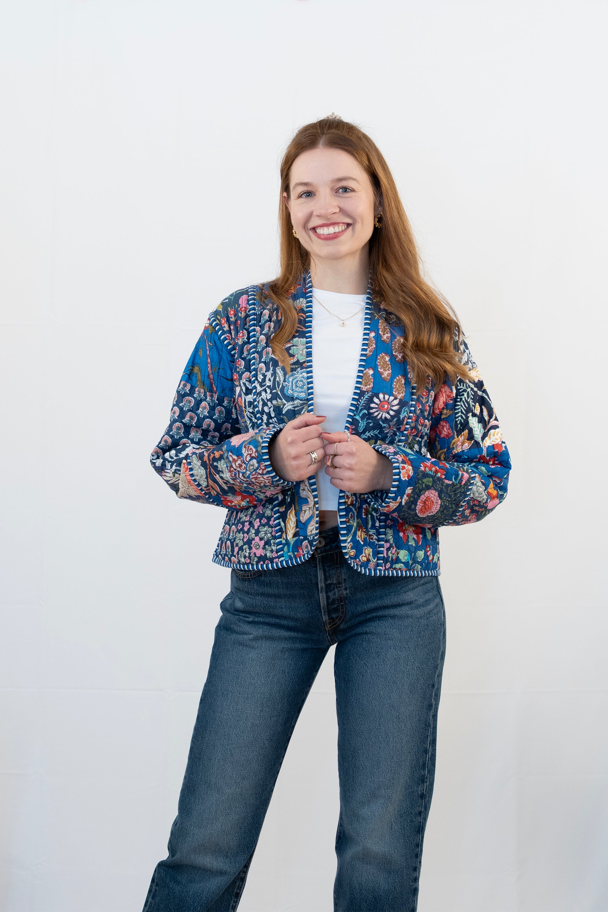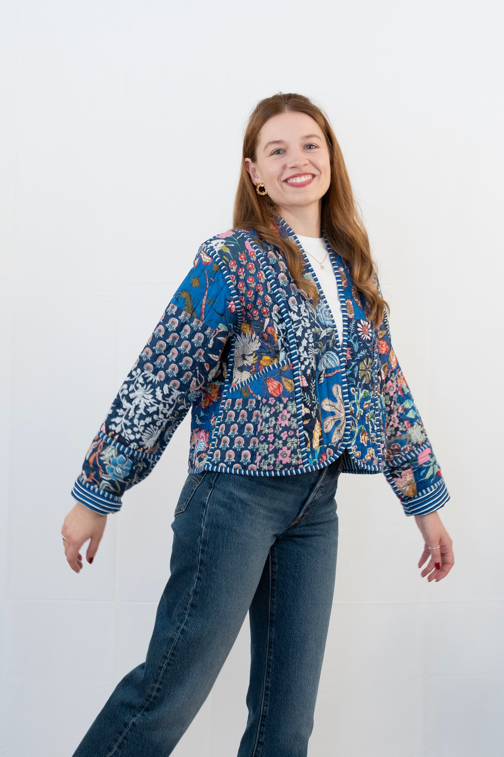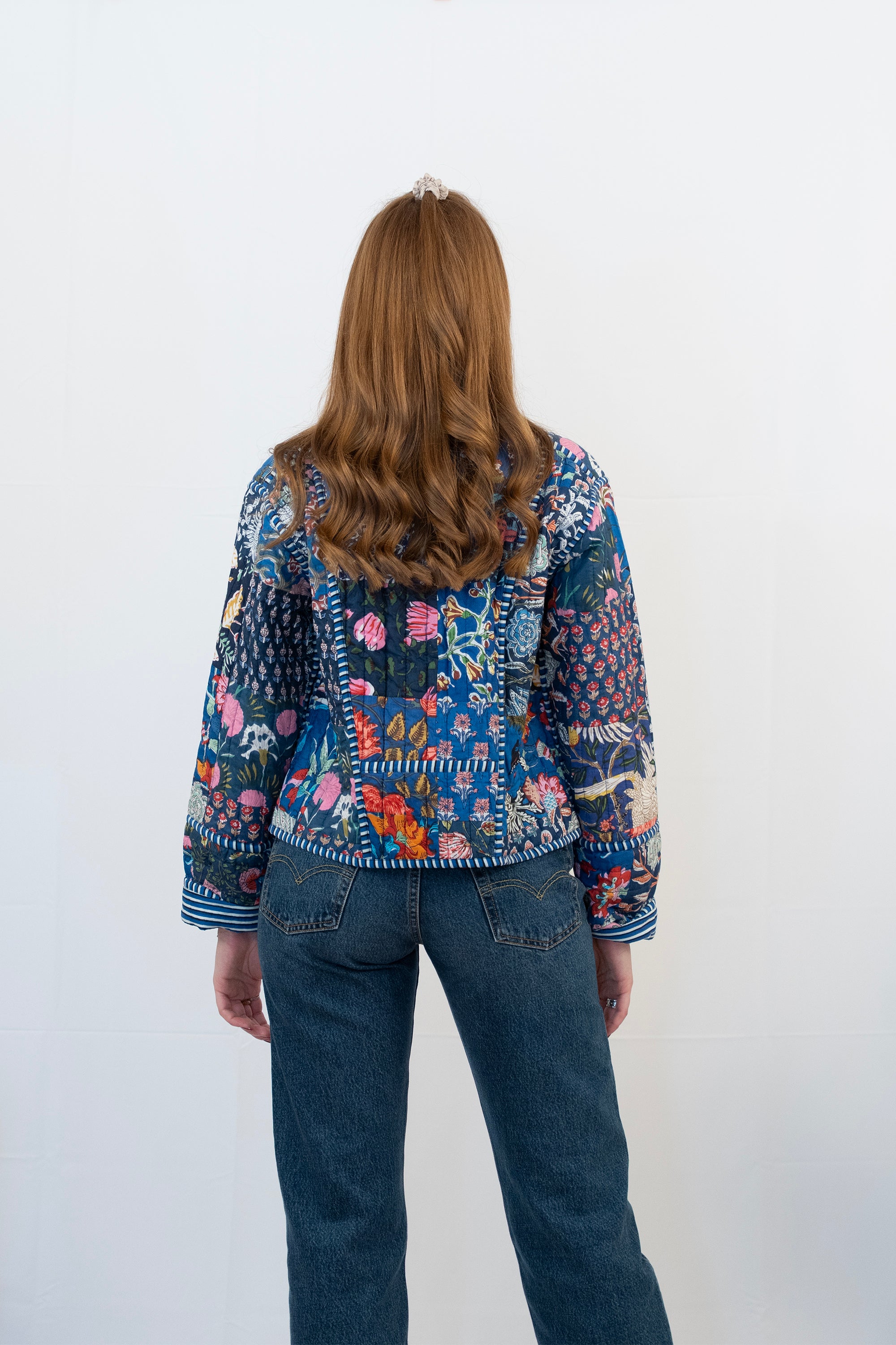 Blaue Patchwork-Shrugjacke