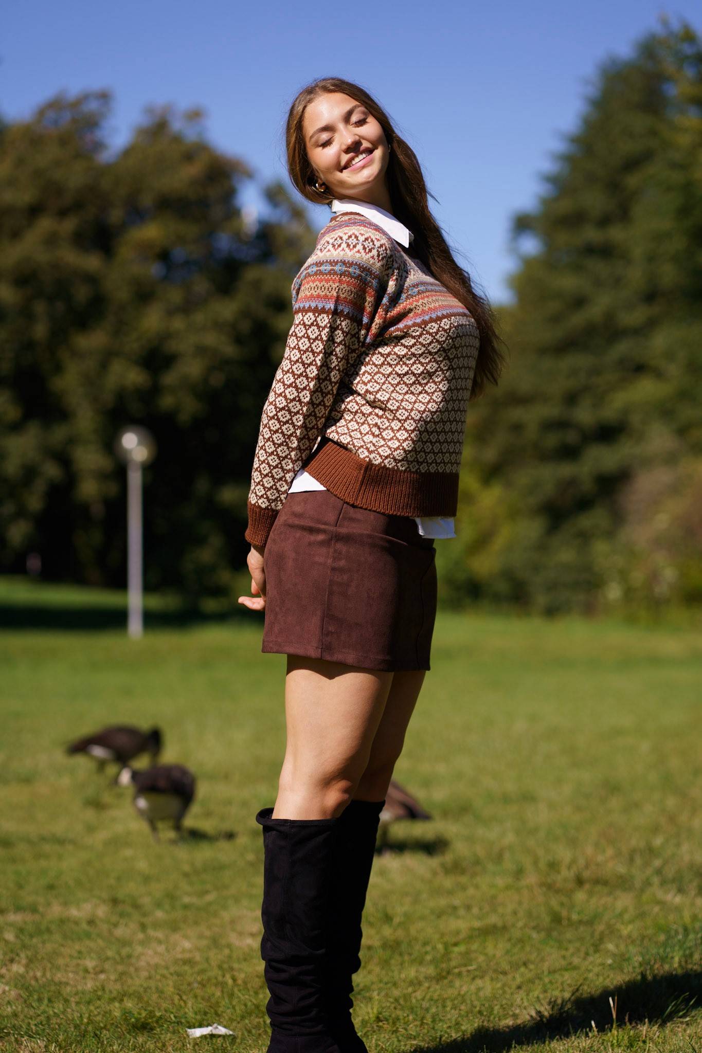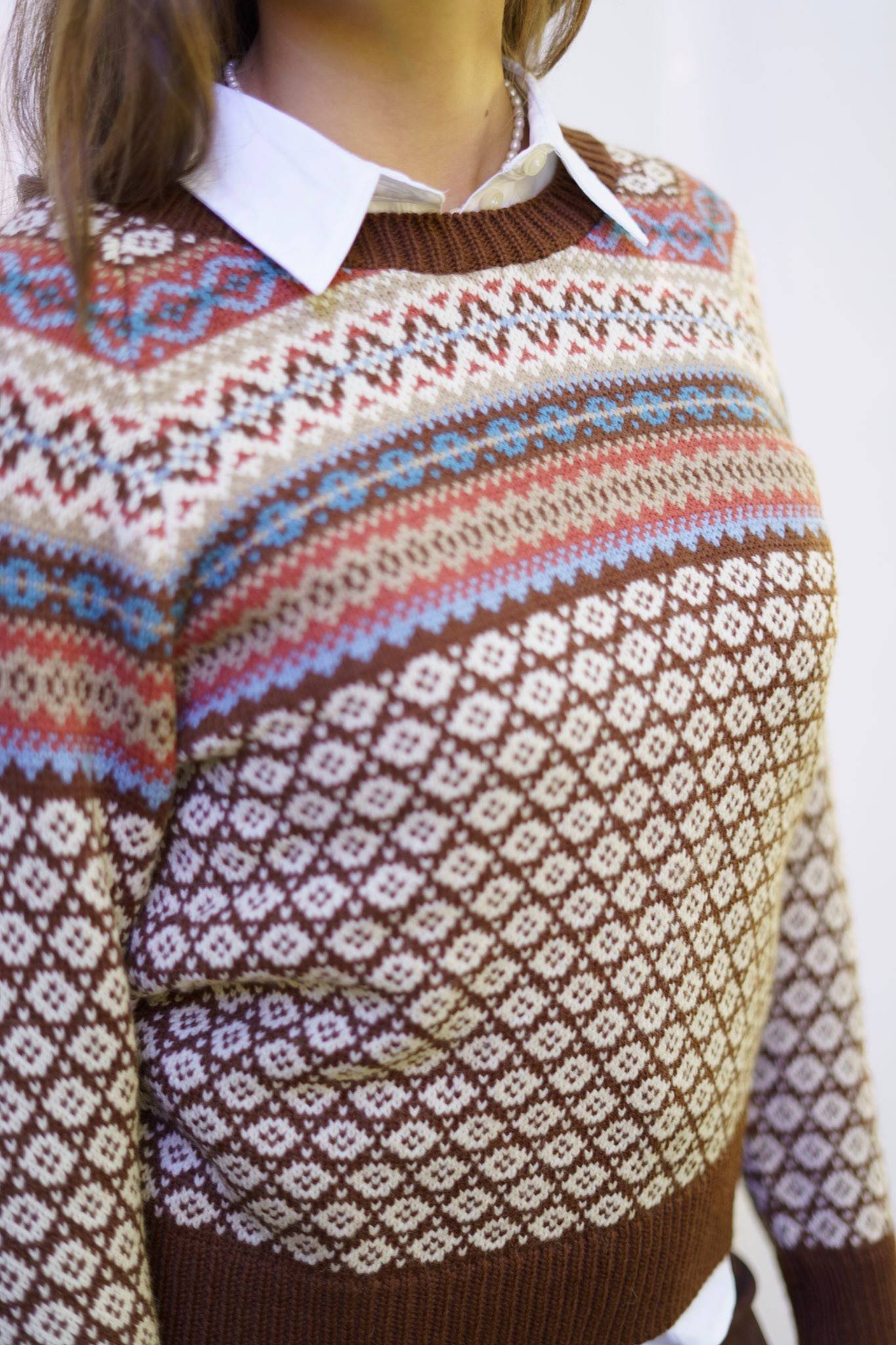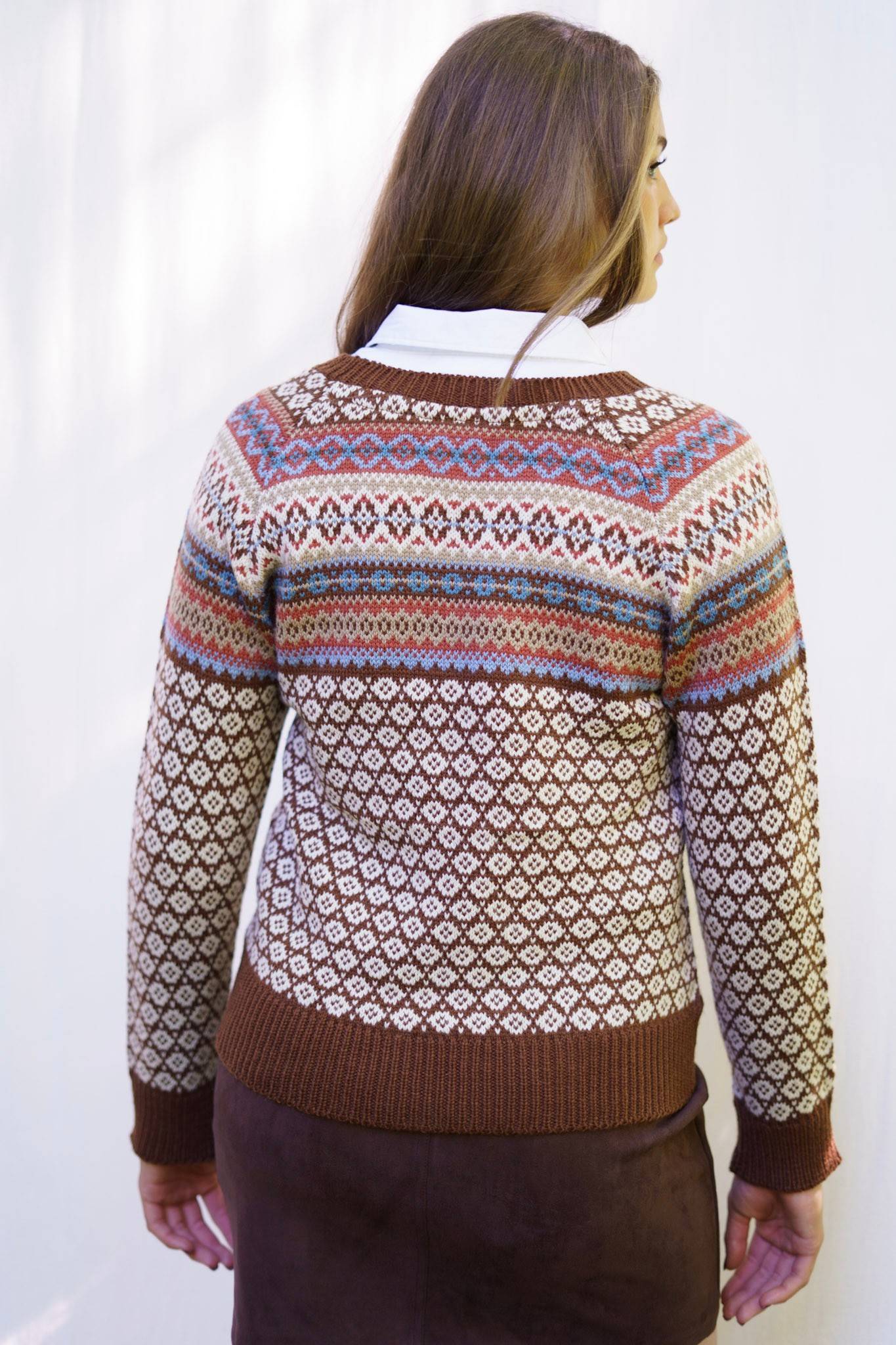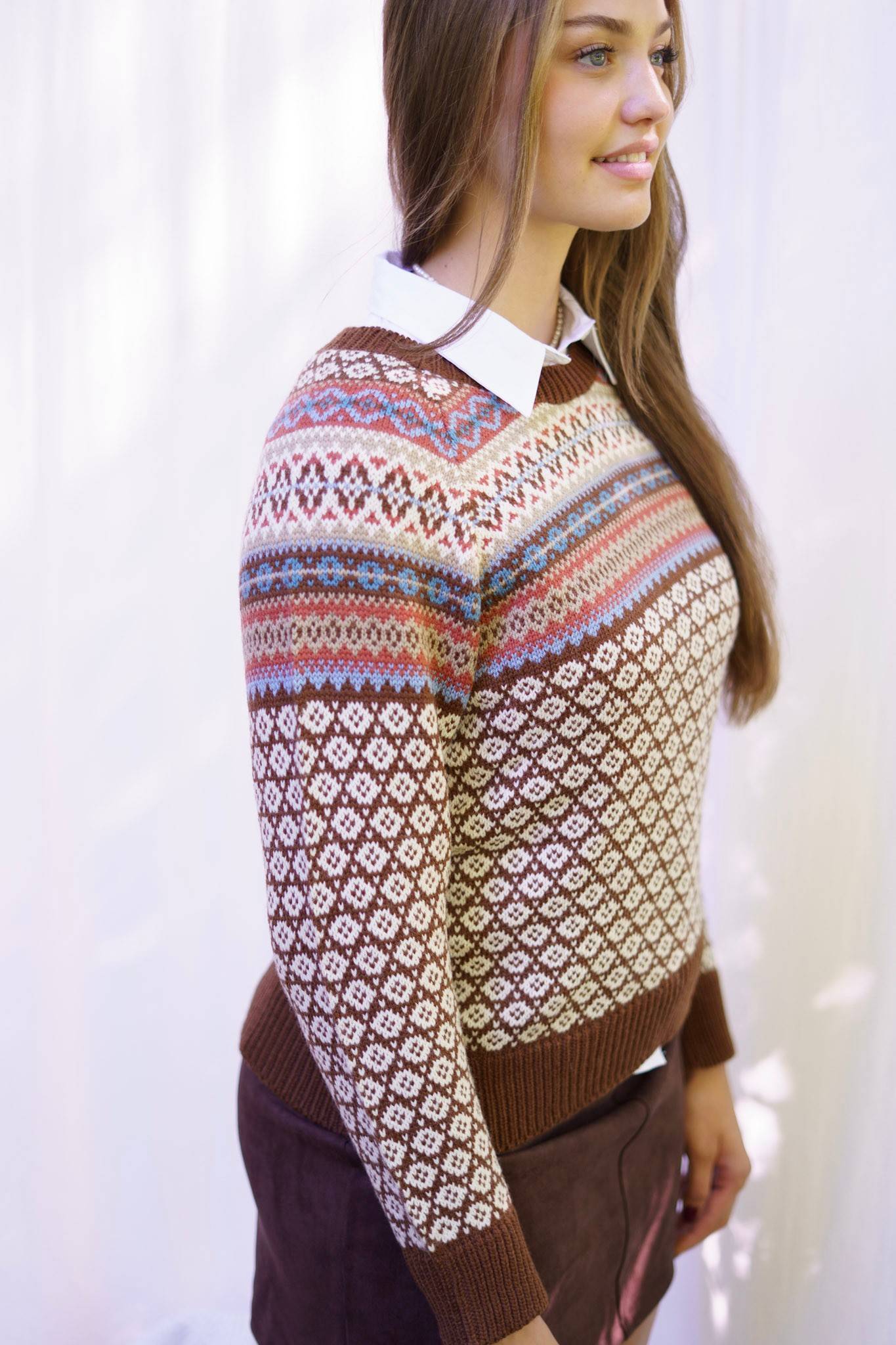 Crafted from the soft wool of Himalayan lambs, this hand-spun Sweater is a true work of artisan skill from Nepal. The timeless Fair Isle pattern in warm caramel brown brings both character and elegance, making it a versatile addition to your fall and winter wardrobe.