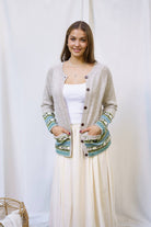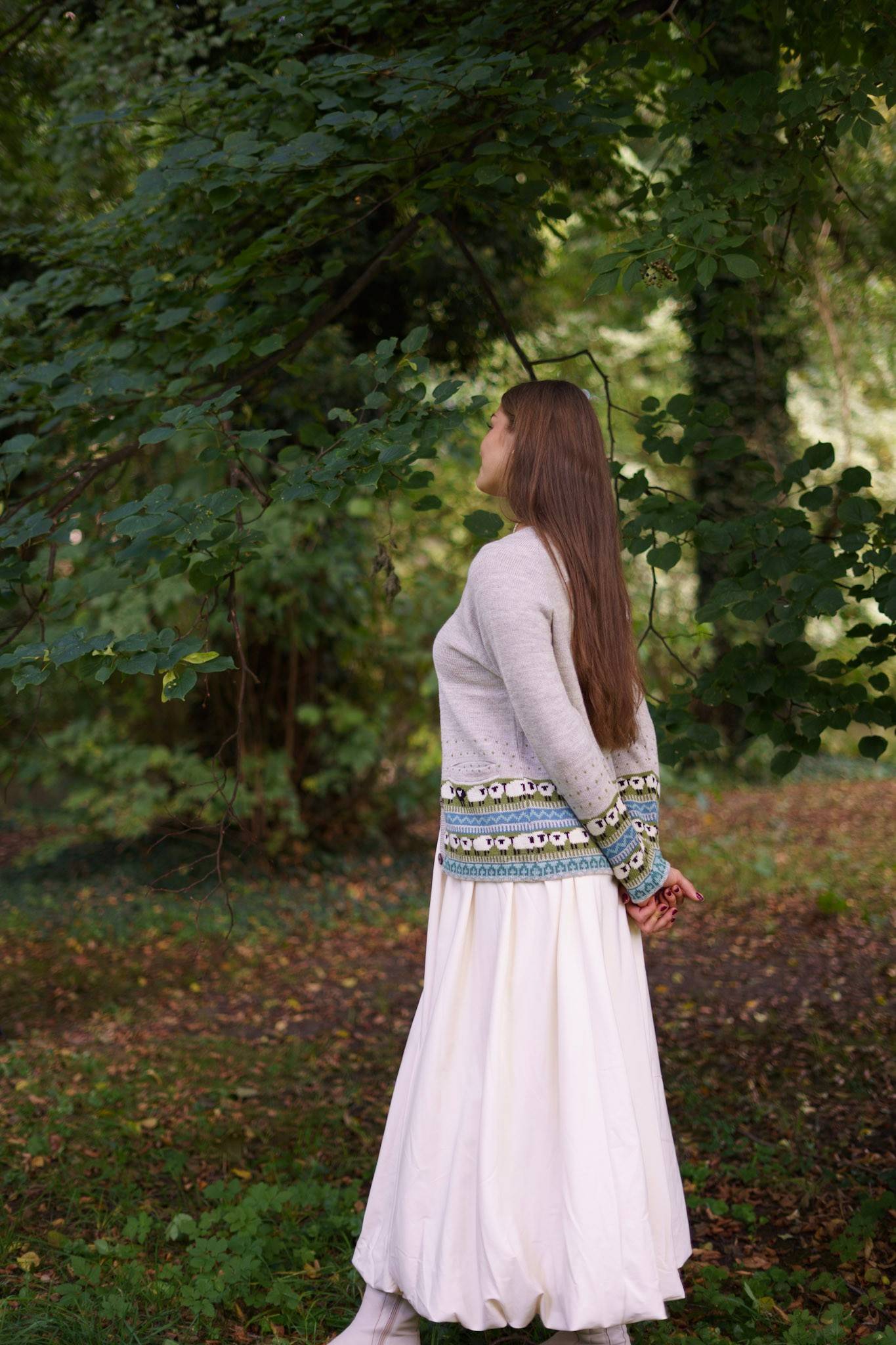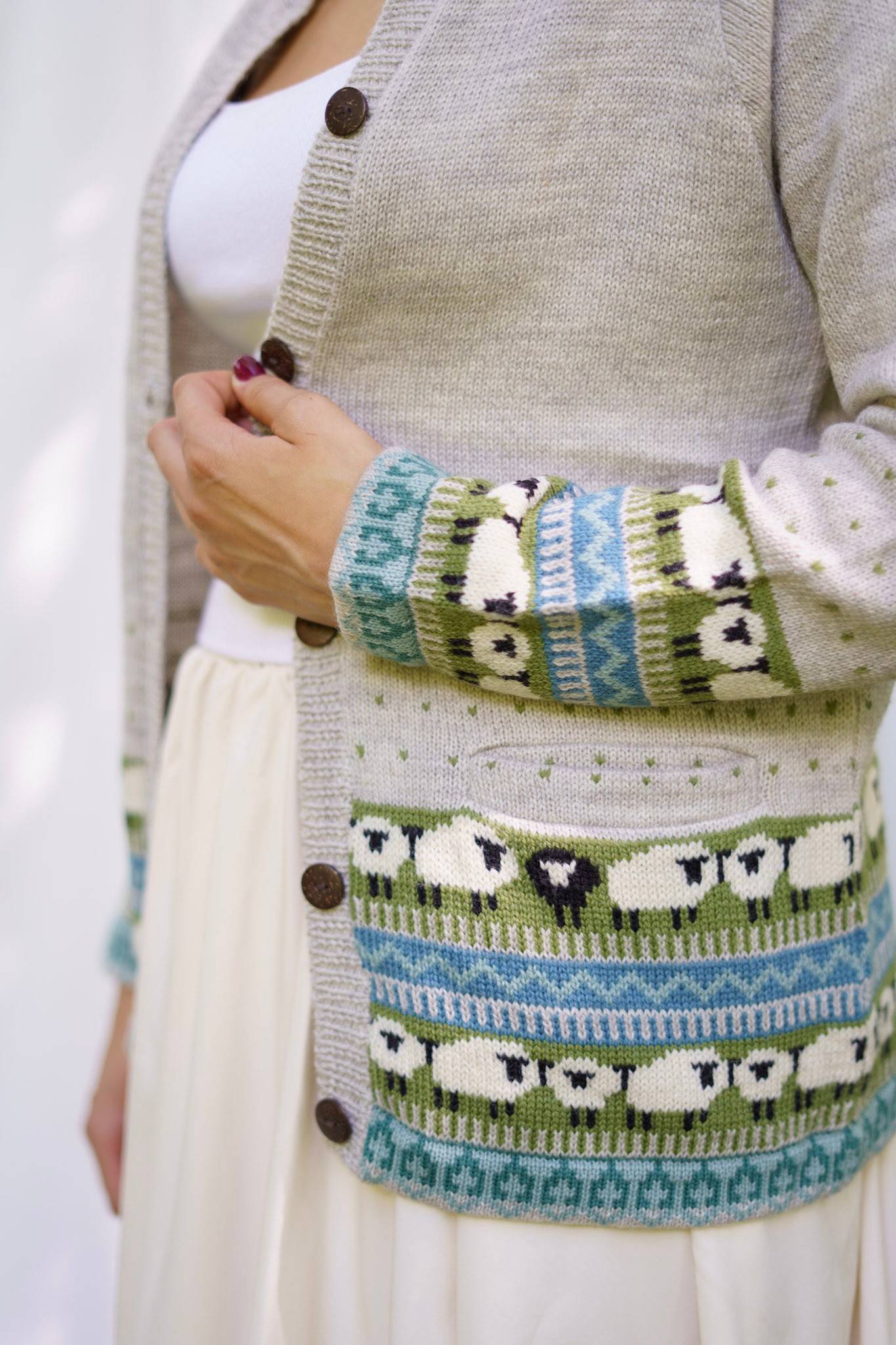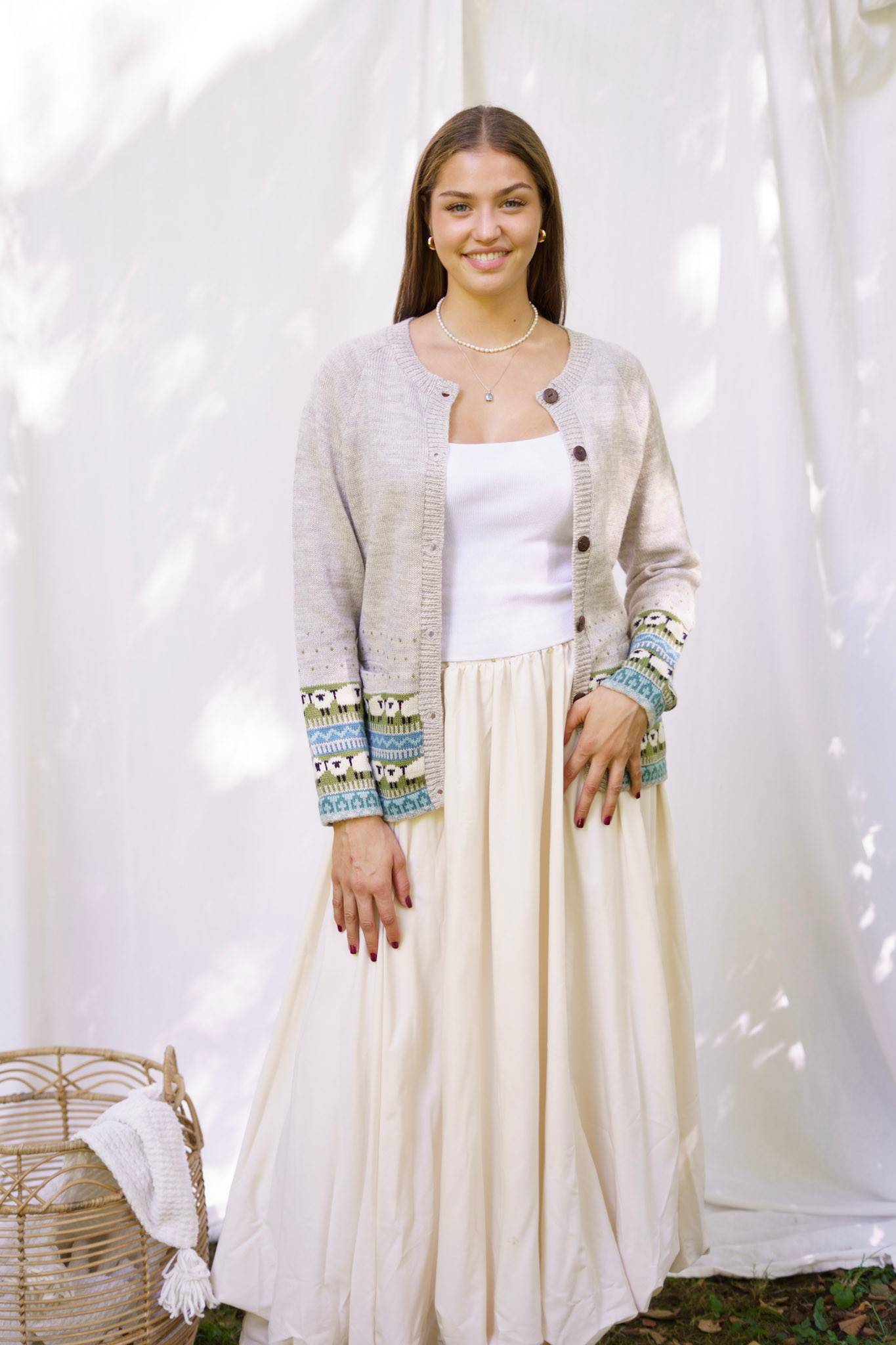 Say hello to our 100% pure Himalayan lamb wool, hand-spun sweater Cardigan . What makes it truly special is the charming sheep design along the hem, adding a touch of playfulness.