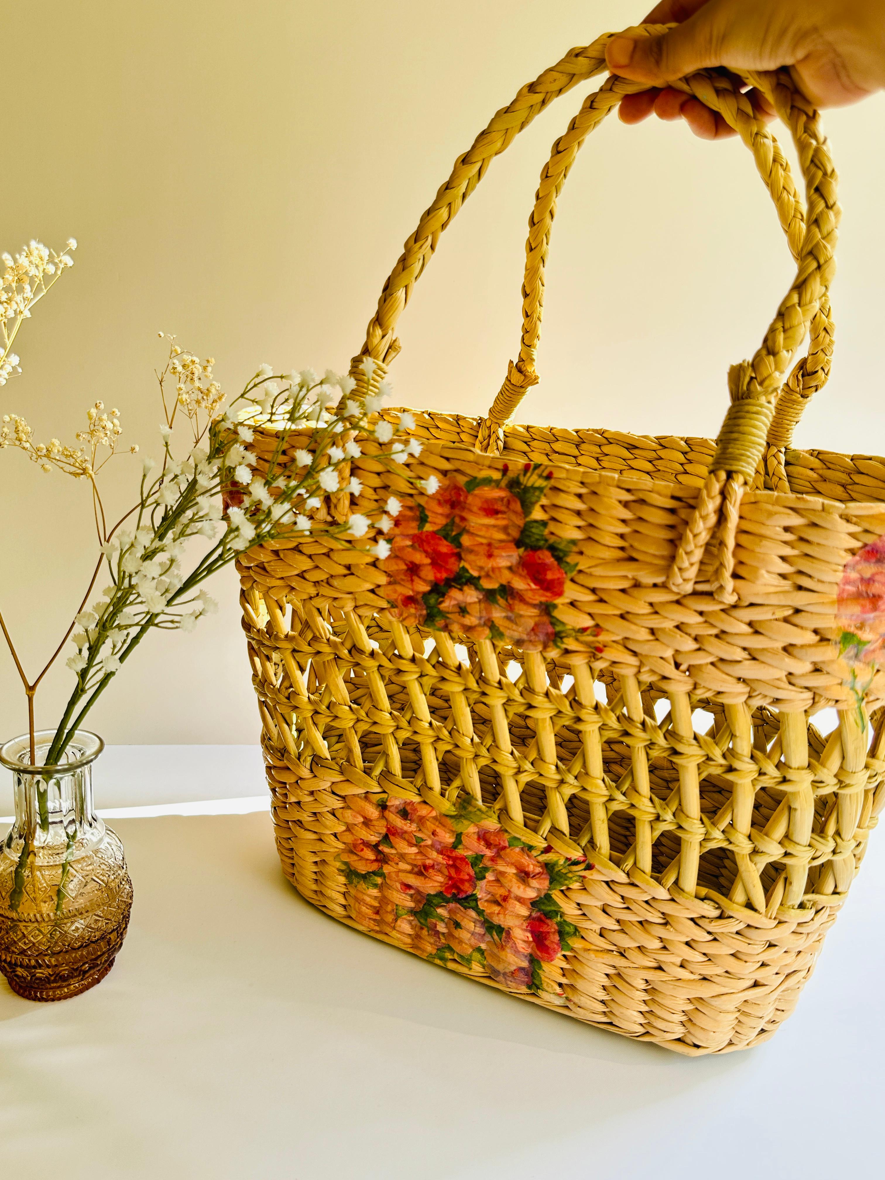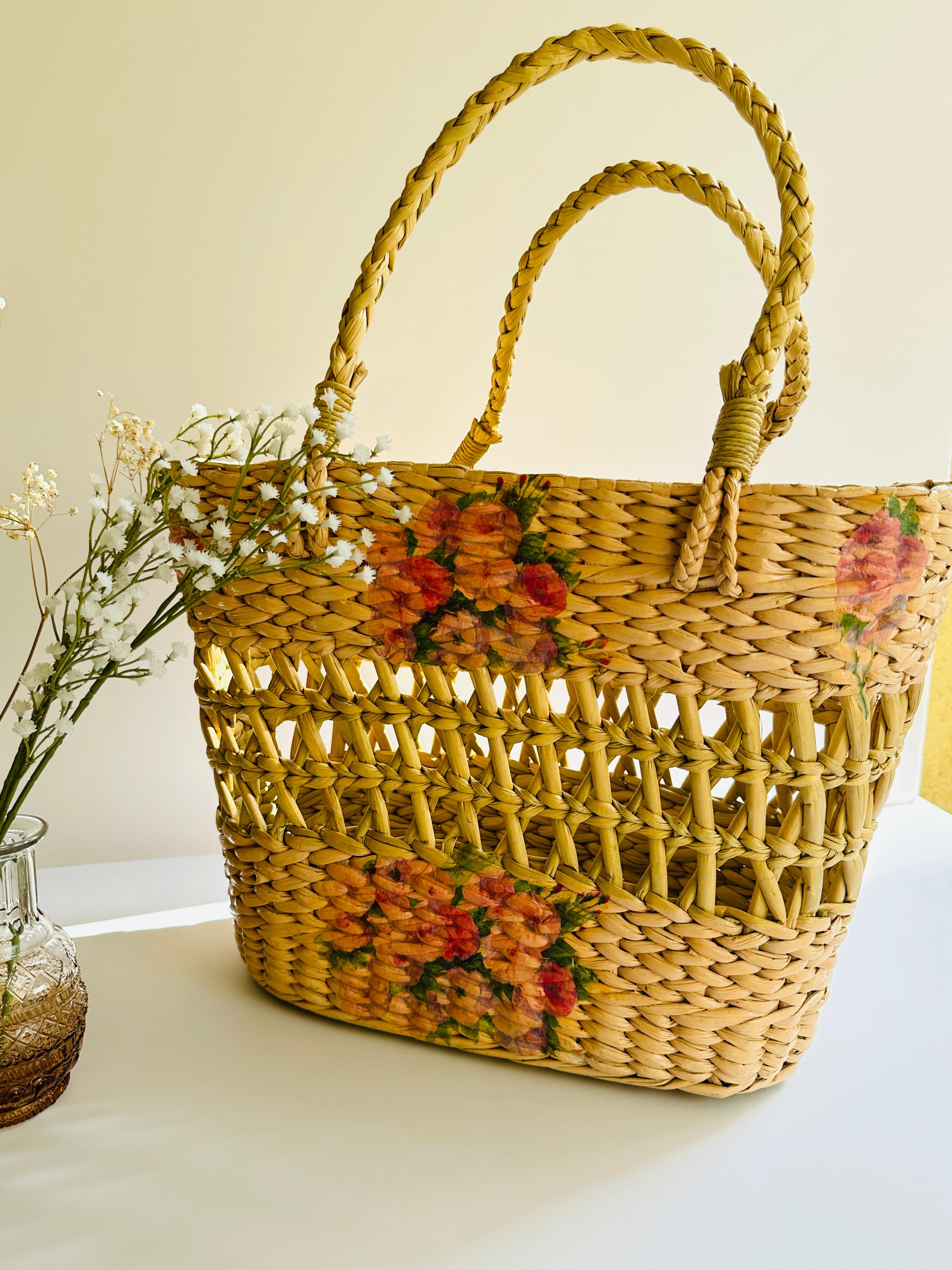 Genießen Sie die zeitlose Schönheit der Rosen mit unserer Rosebud Dreams-Tasche. Diese von erfahrenen Kunsthandwerkern in Indien handgefertigte Tasche ist eine einzigartige Mischung aus Stil und Nachhaltigkeit. Diese Tasche besteht aus umweltfreundlichem natürlichem Seegras, einem erneuerbaren und biologisch abbaubaren Material, und ist in jeder Hinsicht eine bewusste Wahl.
